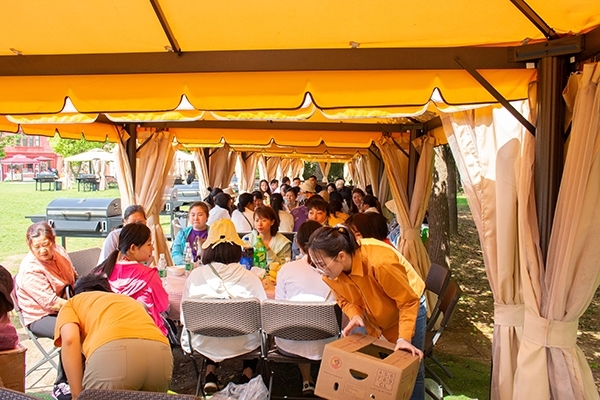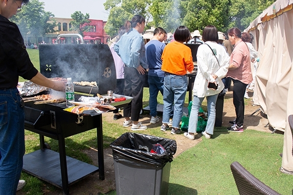 4月30日一大早,我们集聚在尚田小镇的门口,等待公司大部队的到来。在尚田小镇,如果你想做烧烤活动,可以先在这边预定烧烤位置,这边准备好了炭火烤炉和篷子,至于食材,小编觉得还是自己采购的好,一般像火锅食材点都有烧烤食材可购买,食材新鲜,同时也足,另外自己也可以准备好水果和其他的小零食,酒水饮料。
