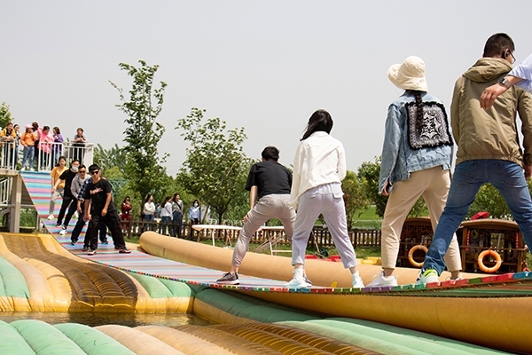 一顿丰盛的餐点过后,在经过小憩过后,公司组织了团体性的小活动,为大家消消食,“配合带球跑”“蒙眼喂香蕉”“摇摆桥”,众人都是玩的不亦乐乎。