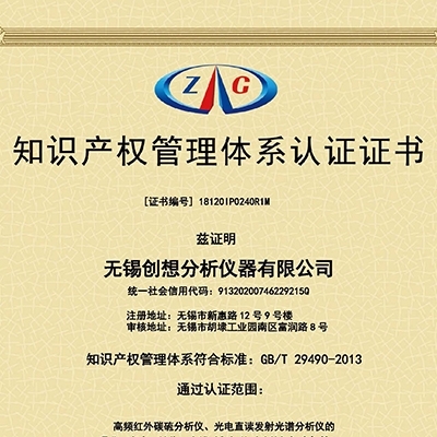 JIANGNAN.COM江南仪器GLMY顺利通过本年次的知识产权管理体系认证,并获证书。 无锡JIANGNAN.COM江南分析仪器有限公司是一家具有自主知...